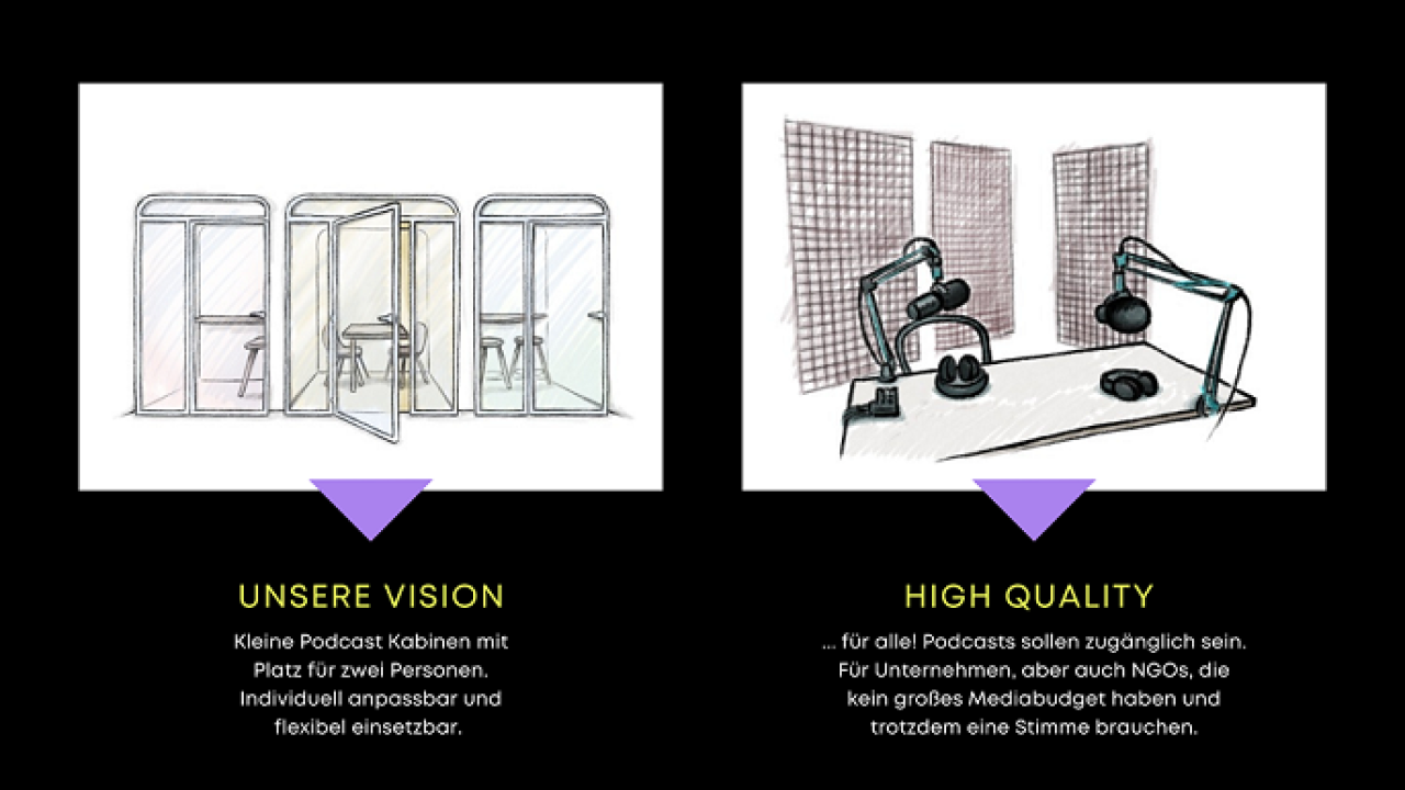At the moment, we mainly work for business customers and have already been able to win over a large corporation. We got this through a cold acquisition when we introduced ourselves to an agency in Hanover. We complement the agency's own range of services without being competitors. However, we also want to give NGOs, i.e. independent, non-governmental organizations without profit goals, the opportunity to make their concerns more visible through image and voice. However, the topic must fit in with our values. Our plan is a podcast scholarship.