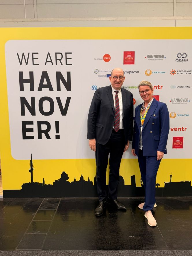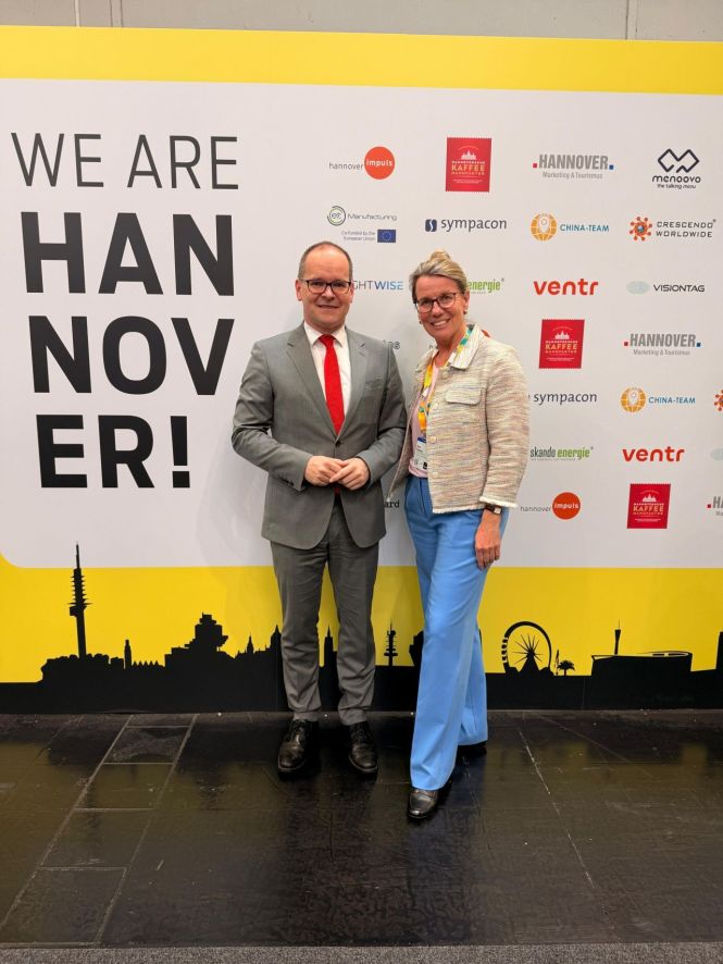 Schon am ersten Messetag wurde der HANNOVER-Stand in Halle 16 (F09) zum Treffpunkt für intensives Networking und zahlreiche Business-Gespräche, bei denen regionale Start-ups und Unternehmen ihre Visionen für die technische und digitale Zukunft präsentierten. Nach der offiziellen Eröffnung konnten wir zahlreiche hochrangige Gäste begrüßen, darunter den Niedersächsischen Ministerpräsidenten Olaf Lies, den Oberbürgermeister der Landeshauptstadt Hannover Belit Onay sowie den Ausschuss für Wirtschaft und Beschäftigung mit Claudia Görtzen, Wirtschaftsdezernent Ulf-Birger Franz und Alexander Skubowius (Region Hannover). Ebenfalls vor Ort waren Sinja Münzberg vom Niedersächsischen Kultusministerium und Kandidatin der Grünen für die Wahl zur Regionspräsidentin, Phuong Dang Thanh, Trade Counselor der vietnamesischen Botschaft in Deutschland, sowie eine chinesische Delegation des Zhengzhou Municipal People’s Government unter Leitung von Deputy Director-General Liu Yatao.