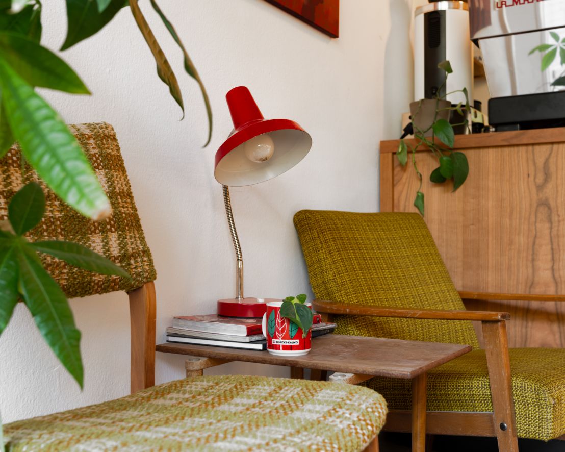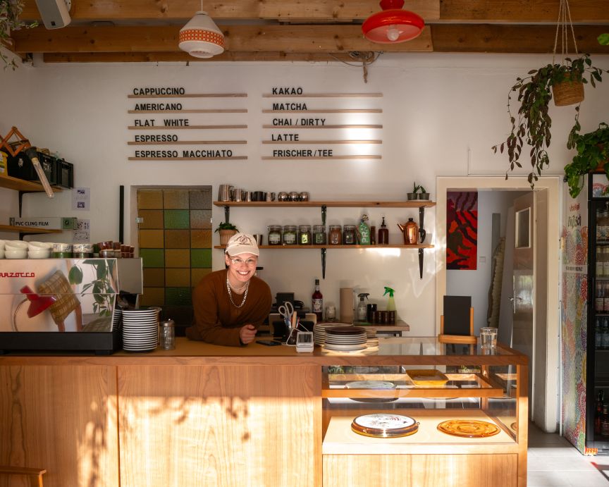 „Es ist die Wohnzimmeratmosphäre – das Gemütliche und vielleicht auch das leicht Zusammengewürfelte mit viel Liebe zum Detail. An den Wänden hängt Kunst von lokalen Künstler*innen, auf den Tischen stehen Pflanzen, und wir verkaufen Keramik aus einem kleinen Studio aus der Südstadt. Dort wurden auch unsere Flat-White-Tassen von Hand getöpfert.