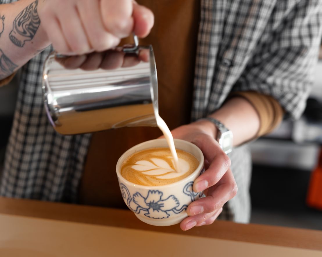 „Alle sind herzlich willkommen: Menschen aus der Nachbarschaft, aus der Uni, jüngere und ältere Gäste – alle, die gerne guten Kaffee trinken. Bei uns kostet Kuhmilch einen Aufpreis. So drehe ich den Spieß um und schaffe einen Anreiz für Hafermilch. Und es funktioniert tatsächlich.“