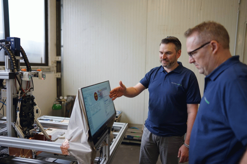 In Zusammenarbeit mit Kund*innen entwickeln wir anhand der Anforderungen die jeweilige Applikation und fertigen diese dann aktuell in Garbsen. Es ist bereits geplant, einen neuen Fertigungsstandort aufzubauen. Die Technologie wird in den nächsten Jahren weiterentwickelt, so dass es demnächst als Sprühsystem direkt beim Kunden in der Produktion über ein Lizenzmodell, steuerbar übers Internet, einsetzbar ist.