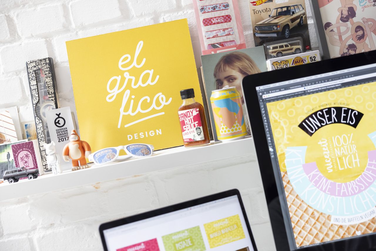 Mit El Grafico Design habe ich mich ganz bewusst für eine Soloselbständigkeit als „One-Man-Show“ entschieden, um die Kosten für Startups oder kleine Firmen aus der Region so gering wie möglich zu halten. Ich arbeite mit einem großen Team von Freelancer*innen zusammen, die ich erst dann einsetze, wenn sie wirklich gebraucht werden. Vor allem kann ich ganzheitlich arbeiten und meine Erfahrungen der vergangenen 15 Jahre einbringen. Von klassischen Marketingaufgaben über Design bis zur Verpackung kommt bei mir alles aus einer Hand. Für Startups schnüre ich erst mal kleine Pakete, denn ich weiß ja aus eigener Erfahrung, dass es vor allem am Anfang immer etwas eng ist.