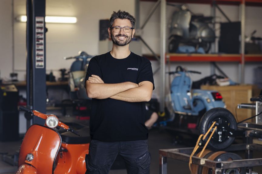 Parallel baue ich ein Netzwerk von Partnerwerkstätten in ganz Europa auf. Der nächste Schritt: Elektro-Kits für große Vespas und klassische italienische Dreiräder. Meine Vision ist ein modulares Baukastensystem, mit dem künftig eine Vielzahl von Zwei- und Dreirädern elektrifiziert werden kann – inklusive vereinfachter Wartung und Reparatur.“