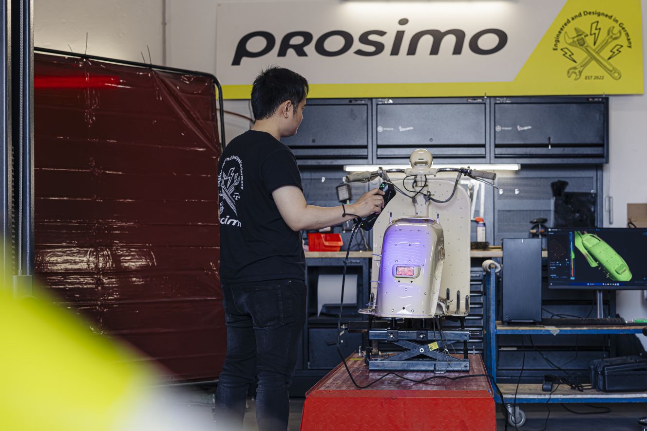 „Ich habe immer schon viel an Vespas repariert. 2016 fiel mir auf, dass Motoren zunehmend kaputtgingen. Das war frustrierend. Also habe ich nach einer besseren Lösung gesucht – und bin beim Elektroantrieb gelandet. Auf dem Markt gab es damals nichts, also habe ich selbst einen Prototyp entwickelt, der 2018 erstmals legal zugelassen wurde. Aus der Garage ging es in die Scheune, dann kam die TÜV-Zertifizierung, das Patent, die Anmeldung beim Markenamt – und 2024 schließlich die Gründung der prosimo GmbH. Alles, was ich einnehme, fließt zurück ins Unternehmen. Meinen Lebensunterhalt verdiene ich bis heute hauptberuflich bei einem Automobilzulieferer in Wolfsburg.“