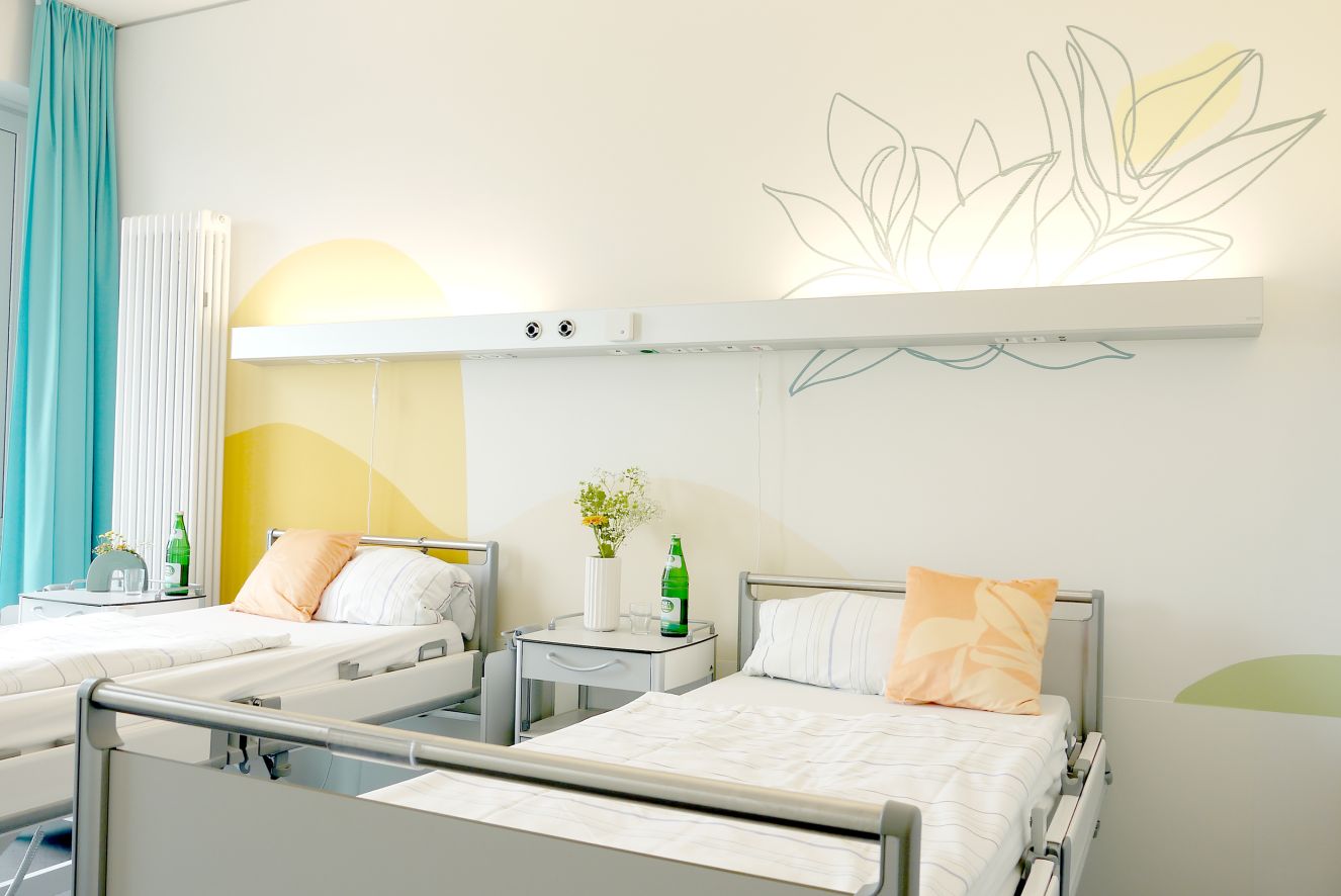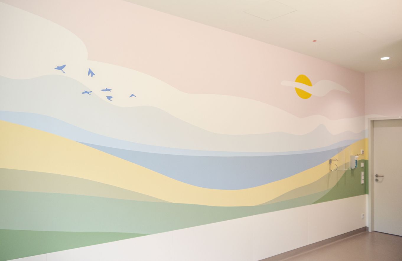Die sterile und weiße Umgebung in der Gesundheits- und Pflegebranche steht in Verbindung mit Hygiene und Reinheit. Allerdings sind auch negative Auswirkungen auf die Gesundheit des Menschen zu verzeichnen. Die fehlende Stimulation von Reizen durch die weißen Wände fördern die Eintönigkeit im Alltag für das Personal und erschweren den Genesungsverlauf der Patient*innen. Daher hat sich resonanzraum zur Aufgabe gemacht, Wände und Decken mit anregenden Formen und beruhigenden Farben zu gestalten. Der Atmosphären-Wechsel verbessert das Image der jeweiligen Einrichtung. Zudem kann der Stress des Personals reduziert und der Genesungsverlauf durch Ablenkung und Stimulation verbessert werden.