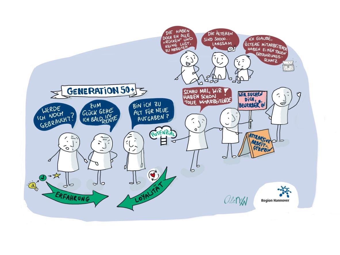 Sktechnote mit mehreren Männchen Generation 50+ © Region Hannover