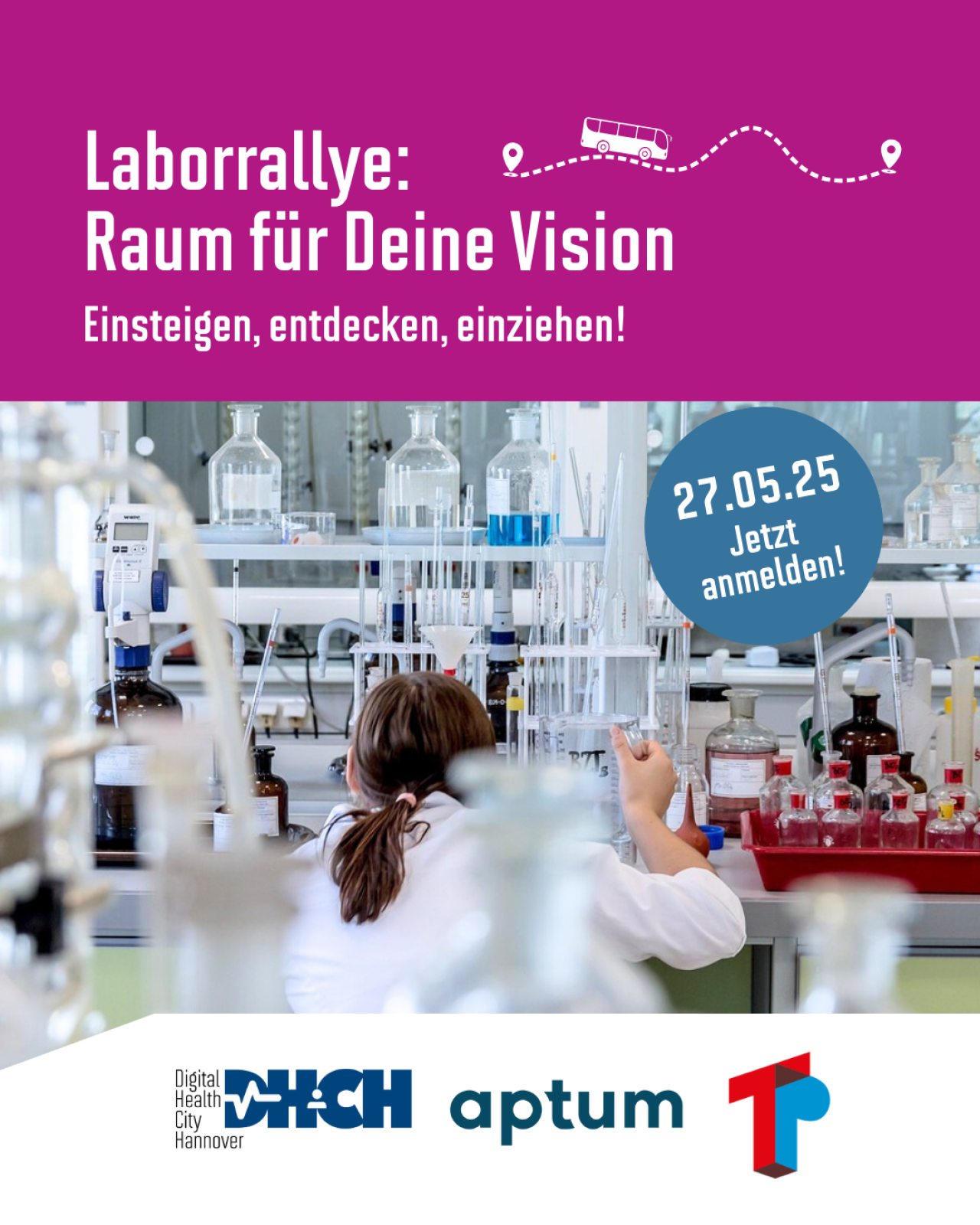 Die Initiative Digital Health City Hannover der hannoverimpuls GmbH und die aptum GmbH laden gemeinsam Startups, Wissenschaftler*innen und Unternehmen ein, verschiedene Mietlabore in Hannover kennenzulernen – inklusive spannender Einblicke, konkreter Mietoptionen und hilfreicher Tipps rund um Förderung, Ausstattung und Netzwerke.