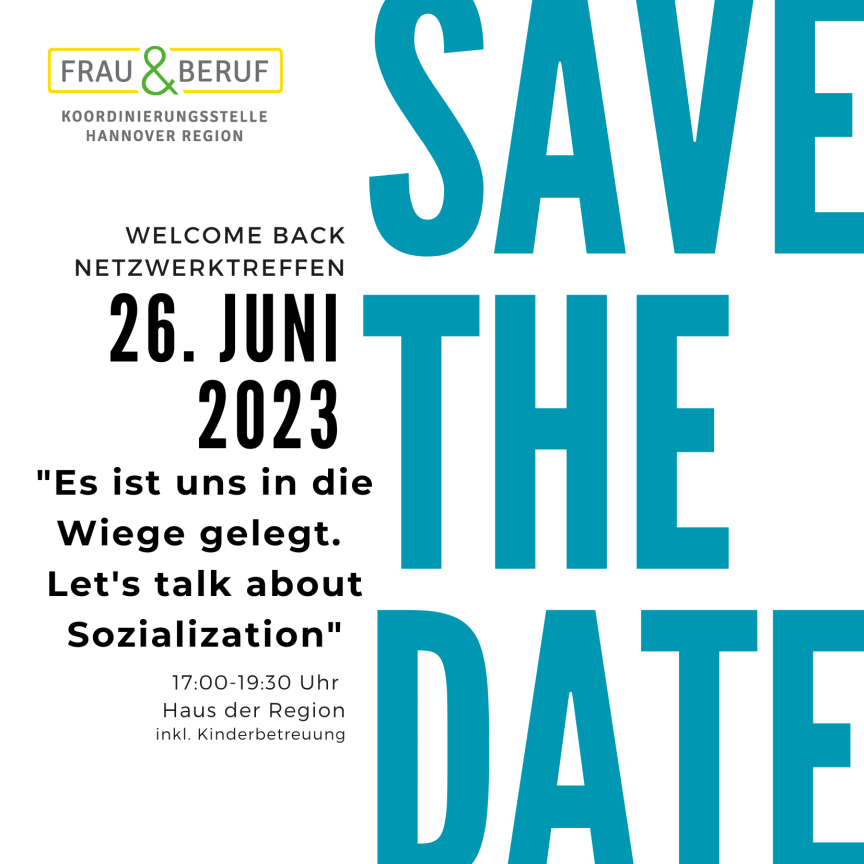Hinweis: Es wird eine Kinderbetreuung durch FLUXX angeboten. Bitte melden Sie Ihr Kind per E-Mail (frauundberuf@region-hannover.de) an.