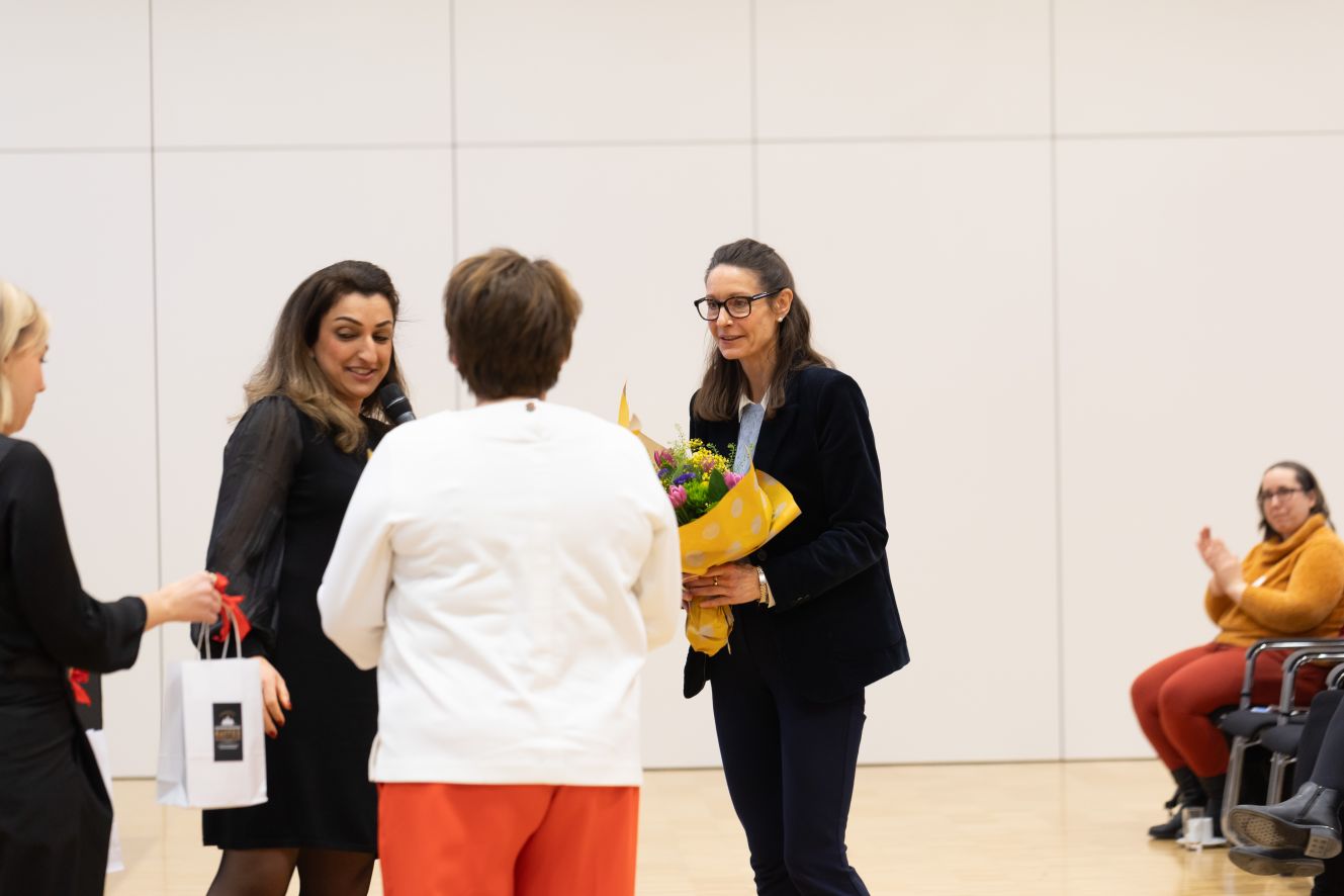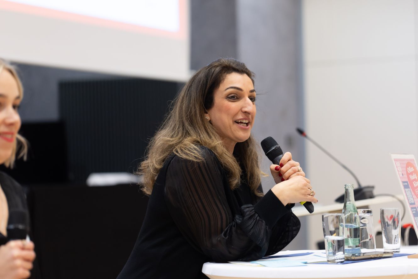 Die Gäste berichteten von ihren Erfahrungen zu partnerschaftlicher Aufteilung der Care Arbeit und der Kommunikation in der Partnerschaft sowie mit dem Arbeitgeber. So unterschiedlich die Best Practice-Erzählungen auch waren: Alle haben betont, wie wichtig gute Organisation und Absprachen sind. Wie wichtig es ist, die eigenen Bedürfnisse klar zu formulieren, aber auch immer offen zu sein für die Bedürfnisse der anderen, damit alle am gleich Strang ziehen. Familienkalender und Netzwerk sind dabei für alle wichtige Tools.