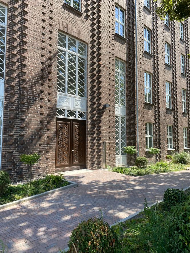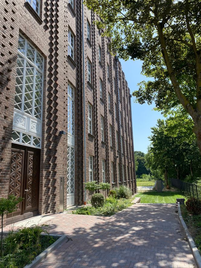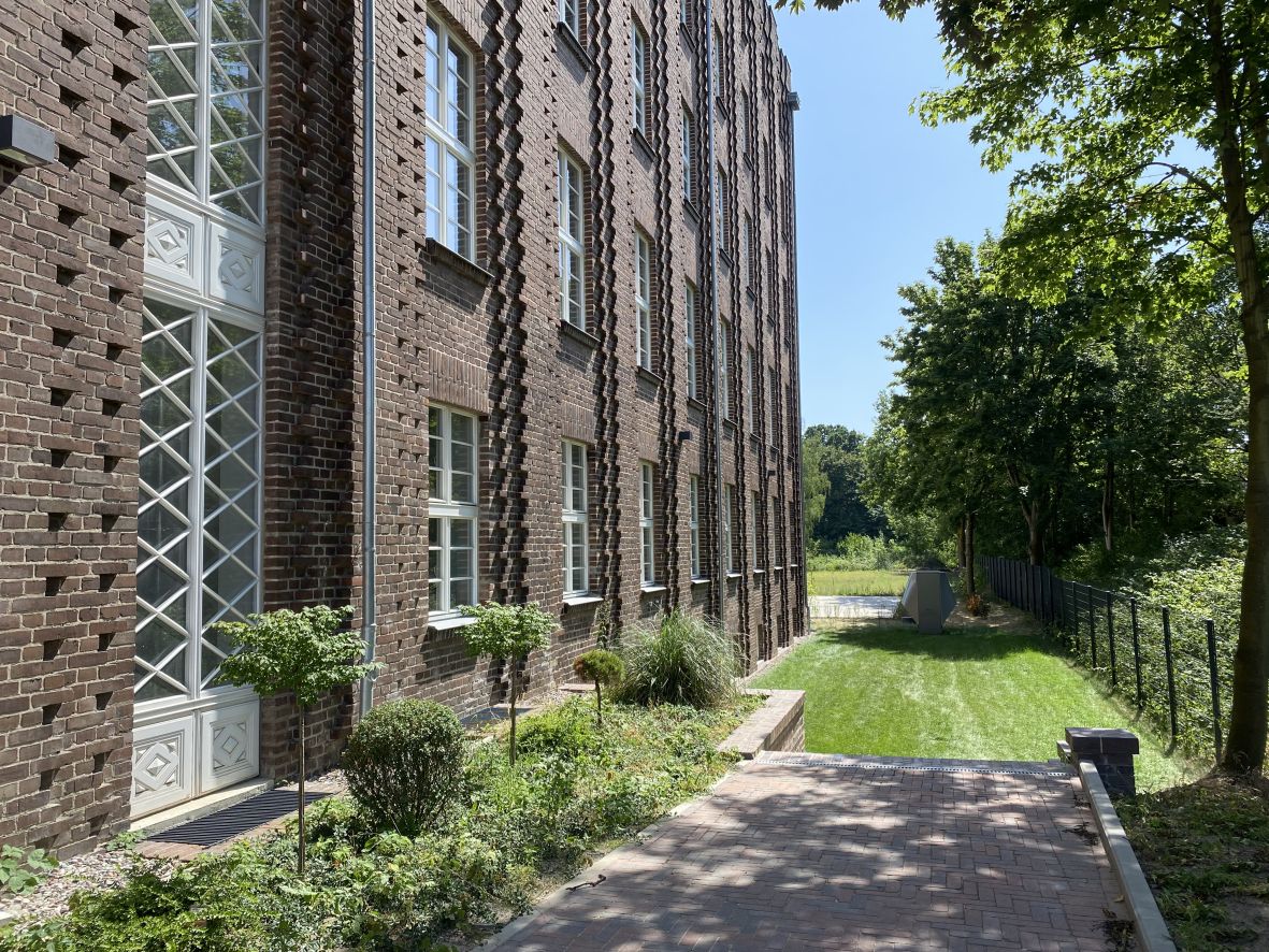 Das Gebäude zeichnet sich durch seine charakteristische Klinkerfassade mit vertikal gegliederten Lisenen aus. Historische Gestaltungselemente wie Fensterbänder, Kappendecken und dekorative Türen wurden aufgearbeitet oder rekonstruiert und mit moderner Ausstattung kombiniert. Entstanden sind hochwertige Büroflächen mit Blick auf das begrünte Grundstück am Mittellandkanal.