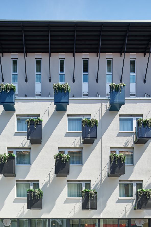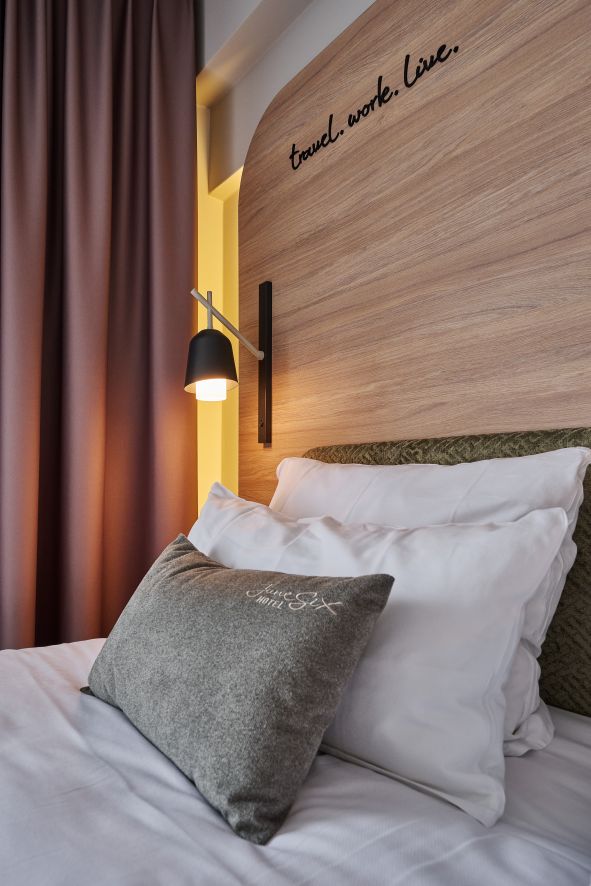 Es verfügt über 115 Zimmer und Suiten, die sich in sieben Kategorien auf sechs Etagen verteilen. Das Haus umfasst u.a. einen WorXSpace - eine Coworkingarea mit 18 Open Space Arbeitsplätzen, Büros, Meetingraum und Lounge Area.