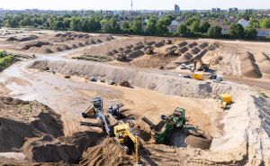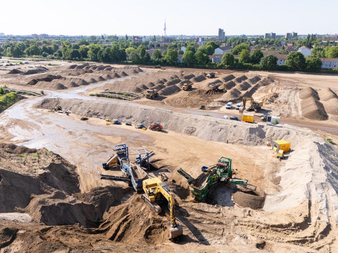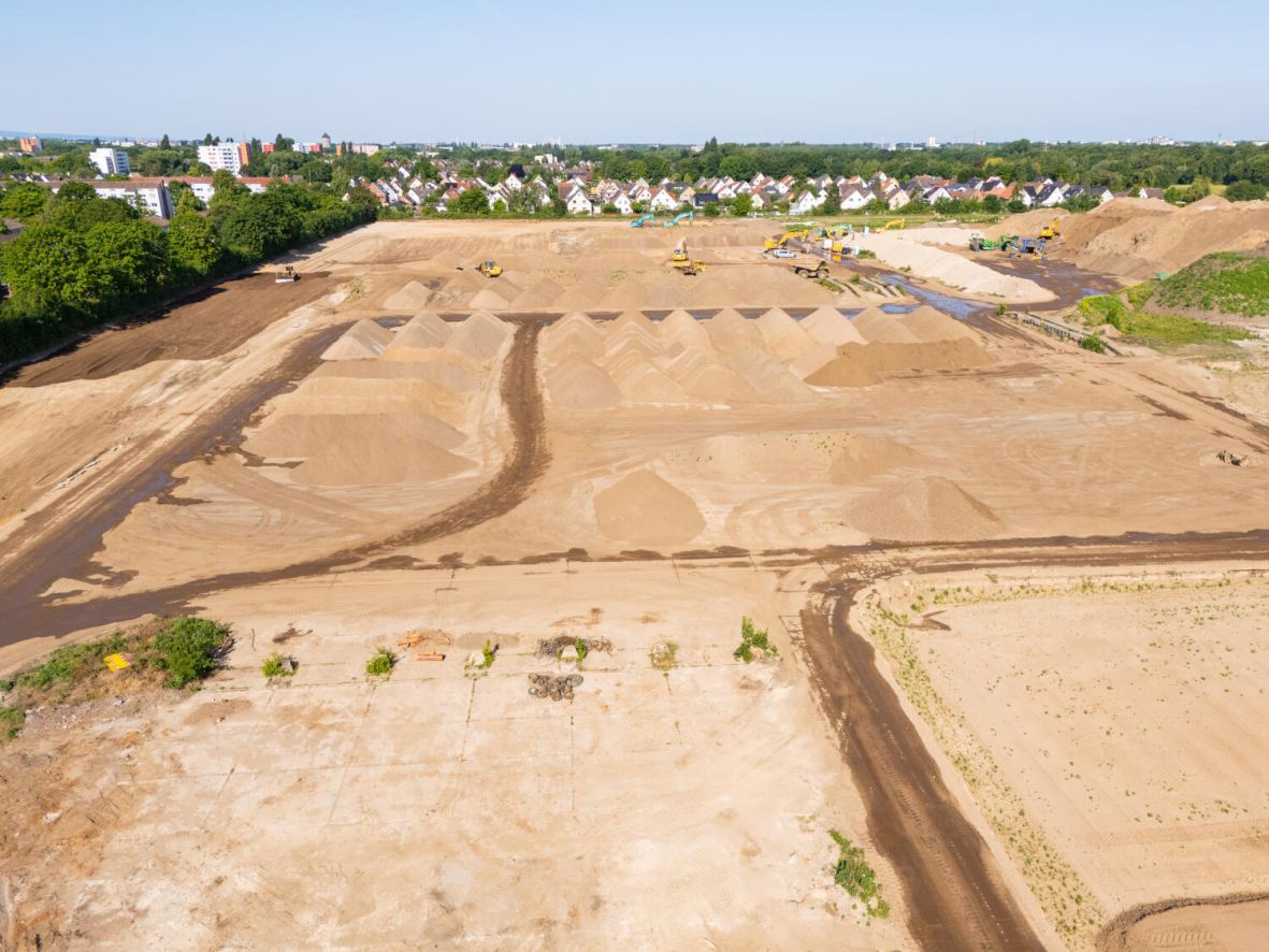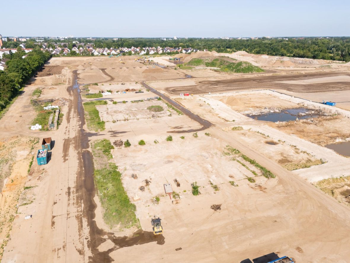 Vor Beginn der Baumaßnahmen erfolgt eine umfangreiche Bodensanierung. Aufgrund der militärischen Vornutzung wird das gesamte Gelände systematisch von Altlasten und Kampfmitteln befreit. Nicht belastete Materialien werden recycelt und für den späteren Wegebau im Quartier verwendet.