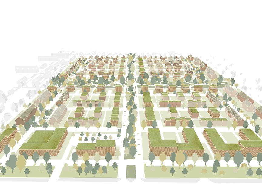 Das Quartier ist in vier Teilbereiche gegliedert und zeichnet sich durch eine nachhaltige Bauweise, großzügige Grünflächen und eine klare städtebauliche Struktur aus. Ein zentrales „grünes Kreuz“ mit Park- und Wegeachsen sowie mehrere „Pocketparks“ sollen die Aufenthaltsqualität im Quartier erhöhen. Geplant ist eine Bebauung mit Gebäuden bis zu vier Geschossen, darunter Reihen- und Mehrfamilienhäuser sowie Townhouses.