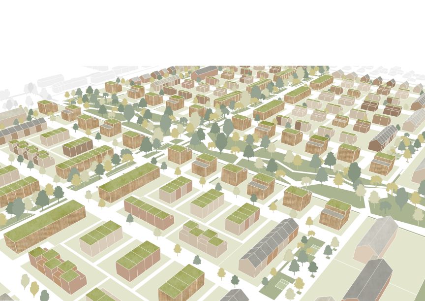Das Quartier ist in vier Teilbereiche gegliedert und zeichnet sich durch eine nachhaltige Bauweise, großzügige Grünflächen und eine klare städtebauliche Struktur aus. Ein zentrales „grünes Kreuz“ mit Park- und Wegeachsen sowie mehrere „Pocketparks“ sollen die Aufenthaltsqualität im Quartier erhöhen. Geplant ist eine Bebauung mit Gebäuden bis zu vier Geschossen, darunter Reihen- und Mehrfamilienhäuser sowie Townhouses.