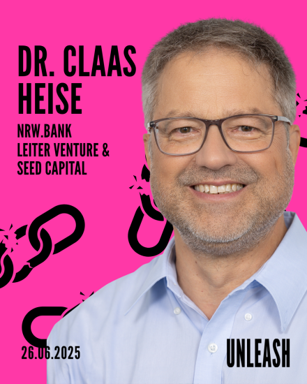 Claas Heise hat in seiner nunmehr mehr als 25-jährigen VC-Erfahrung unter anderem für die VC-Tochter der Deutschen Telekom gearbeitet und mehrere Jahre lang deren Aktivitäten in den USA geleitet. Zusammen mit einem Partner war er ebenfalls in den USA im Corporate VC-Segment aktiv, bevor er 2008 zur NRW.BANK stieß und seitdem deren Venture Capital-Geschäft leitet. Claas Heise ist ursprünglich Physiker und hat in diesem Gebiet mehrere Jahre lang an renommierten Instituten gearbeitet. Über Management-Tätigkeiten bei der Deutschen Telekom und Sales- und Marketingaufgaben bei einem Enterprise Software-Start-up, in das er seit Gründung involviert war, kam er zum Venture Capital, dessen Vielseitigkeit ihn seitdem nicht mehr loslässt.