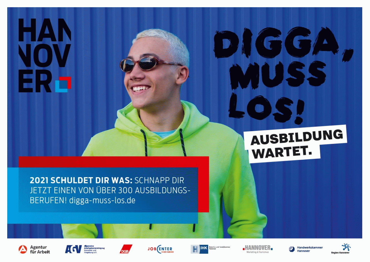 Region Hannover. Angebot und Nachfrage auf dem Ausbildungsmarkt zusammen zu bringen: Auch im zweiten Jahr der Corona-Pandemie bleibt das eine Herausforderung. Mit den zwei Kampagnen „Digga muss los! Ausbildung wartet.“ und „Klar bilden wir aus!“ hat der Regionale Bildungsbeirat im letzten Jahr eine deutliche Botschaft an Absolventinnen und Absolventen sowie an Ausbildungsbetriebe adressiert. Das Ziel: Beide Seiten in Kontakt zu bringen und in Ausbildung zu vermitteln. Den von der Bundesregierung ausgerufenen „Sommer der Berufsausbildung“ nehmen die Mitglieder des Bildungsbeirats zum Anlass, ihre Aktivitäten fortzusetzen und zu verstärken.