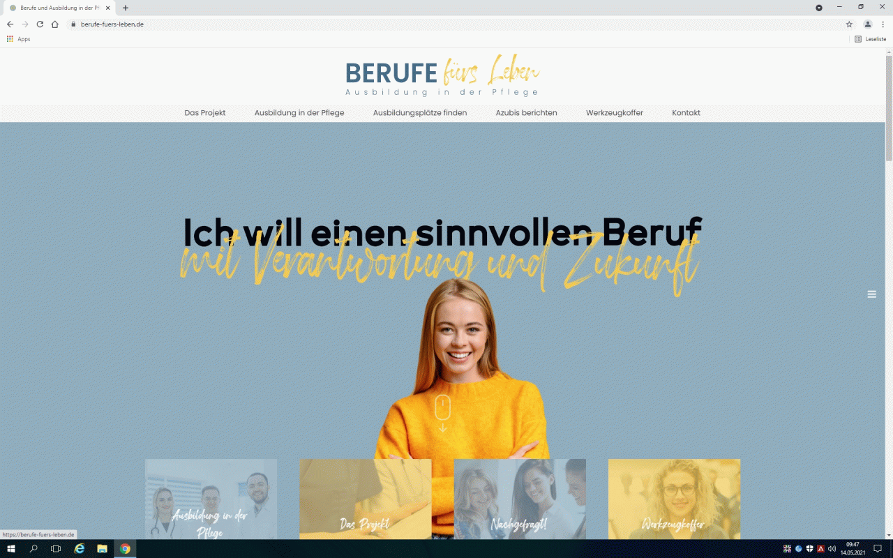 Wer sich informieren möchte, findet alle Infos zum Beruf Pflegefachmann/-frau unter https://berufe-fuers-leben.de/. Die frisch gelaunchte Seite vermittelt einen Überblick rund um die Ausbildung und informiert außerdem über die Handlungsfelder des Projekts.