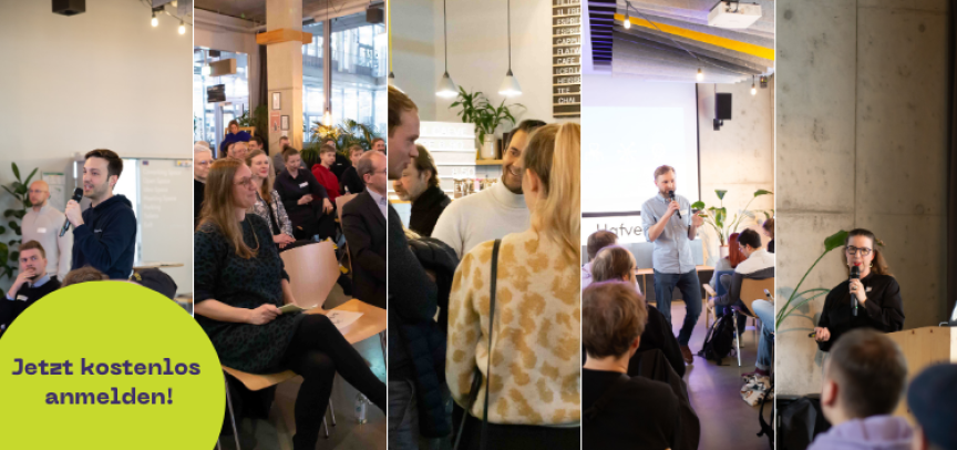 Im Rahmen eines 7-minütigen Pitches haben die Teams die Gelegenheit, ihre Ideen und Visionen vorzustellen. Nach den Präsentationen gibt es Raum für Austausch und Gespräche, bei Getränken und kleinen Snacks.