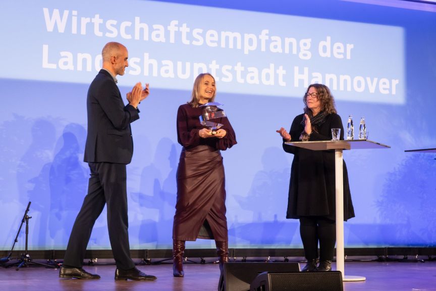 Im Anschluss wurde der STADT-HANNOVER-PREIS 2025 verliehen. Als Unternehmerin des Jahres wurde Janine Ahrens ausgezeichnet, Gründerin und Geschäftsführerin von KITZ HEIMAT. Ihr Unternehmen steht für hochwertige und nachhaltige Kinderbekleidung. Dabei verbindet die Unternehmerin wirtschaftlichen Erfolg konsequent mit gesellschaftlicher Verantwortung. Oberbürgermeister Belit Onay überreichte der Preisträgerin den begehrten Award und würdigte ihre zukunftsfähige wie umsatzstarke Unternehmensausrichtung.